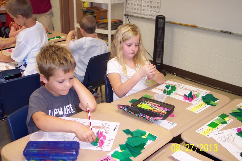 The Cherokee First graders have had a very busy September. We talked about apples, Johnny Appleseed, Apple Tree seasons. We also have been busy with writing numbers, playing Top-It in math, and working on reading.