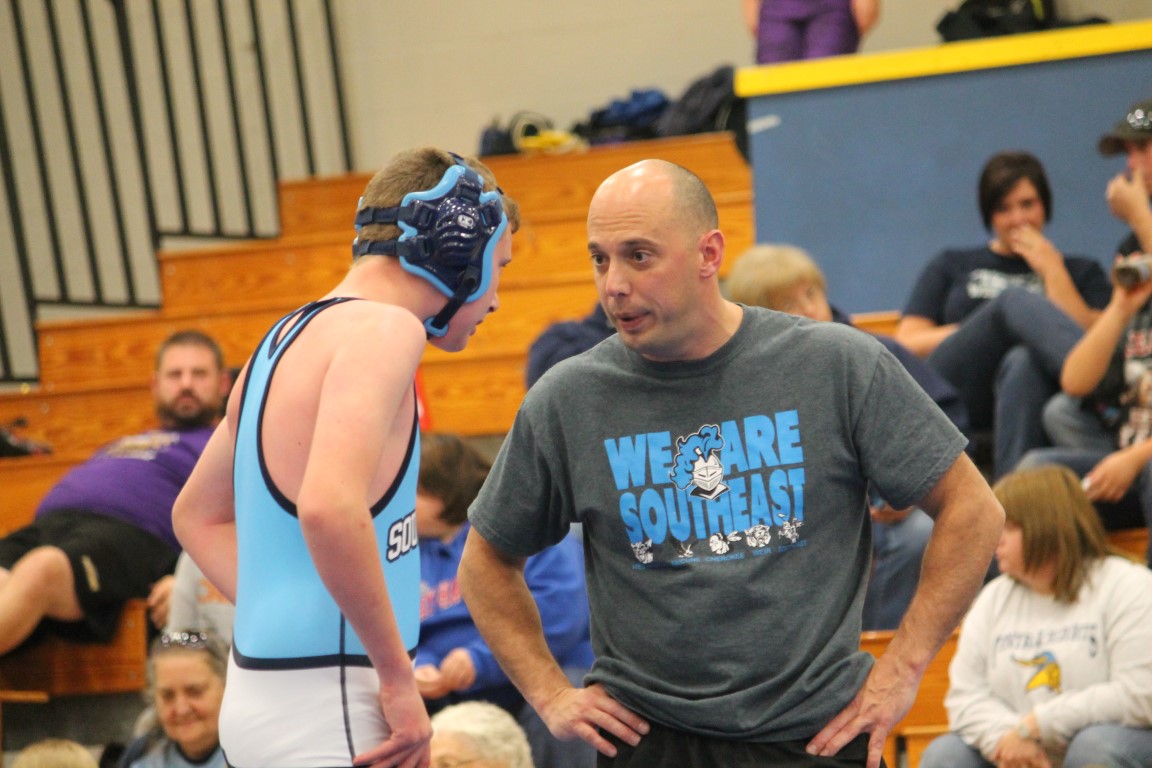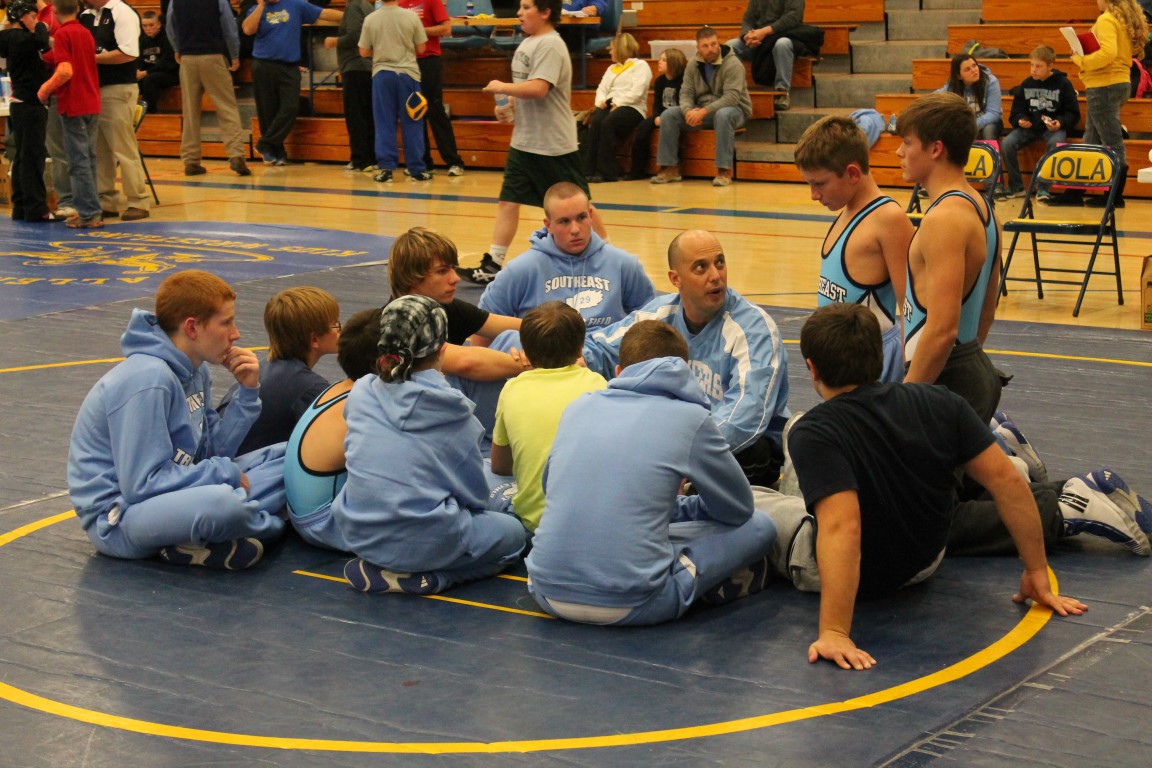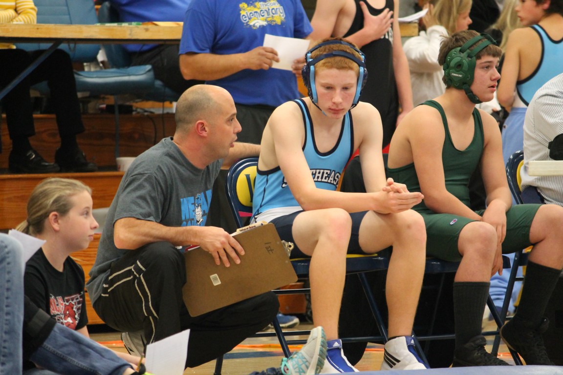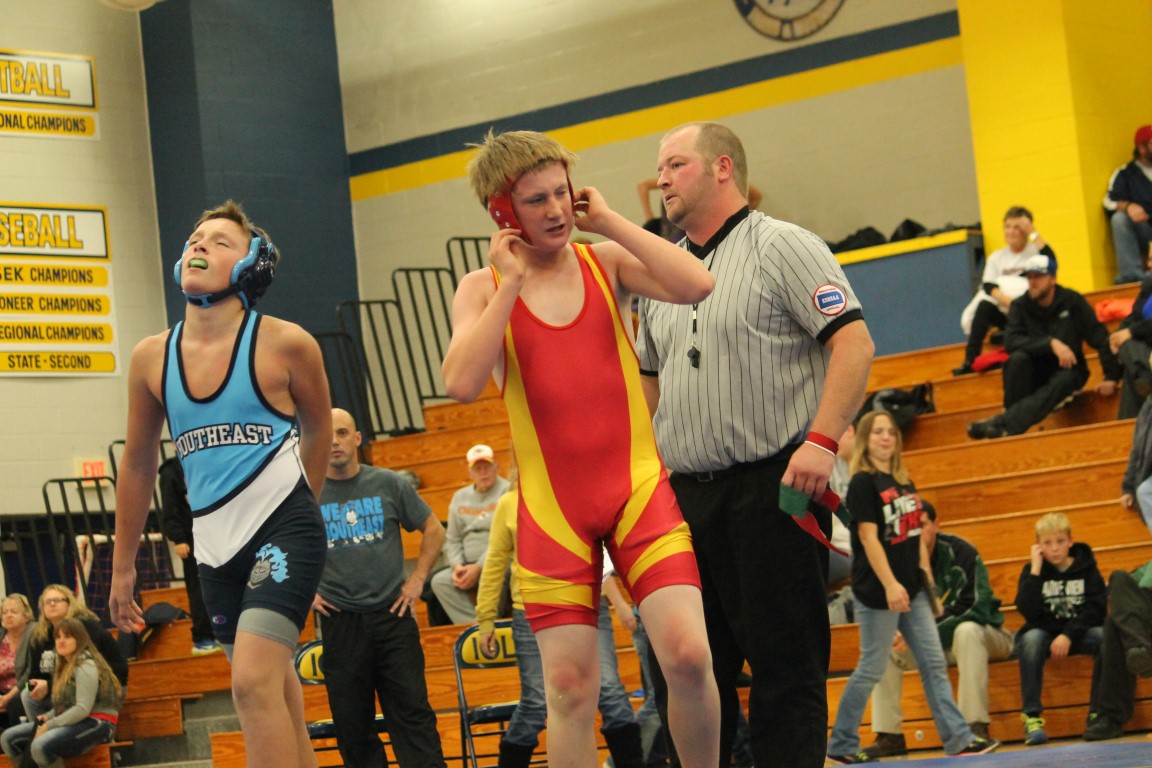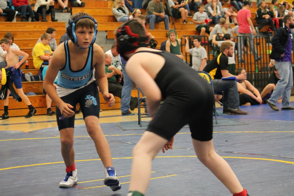 Southeast Junior High eighth grader Gage Large of Weir, Kansas became the first student-athlete to represent the Lancers in the sport of wrestling on Tuesday afternoon. With Coach Jason Wilderman watching on, in his opening match Large broke a 5-5 tie in the final period for his, and the district’s, first ever win.