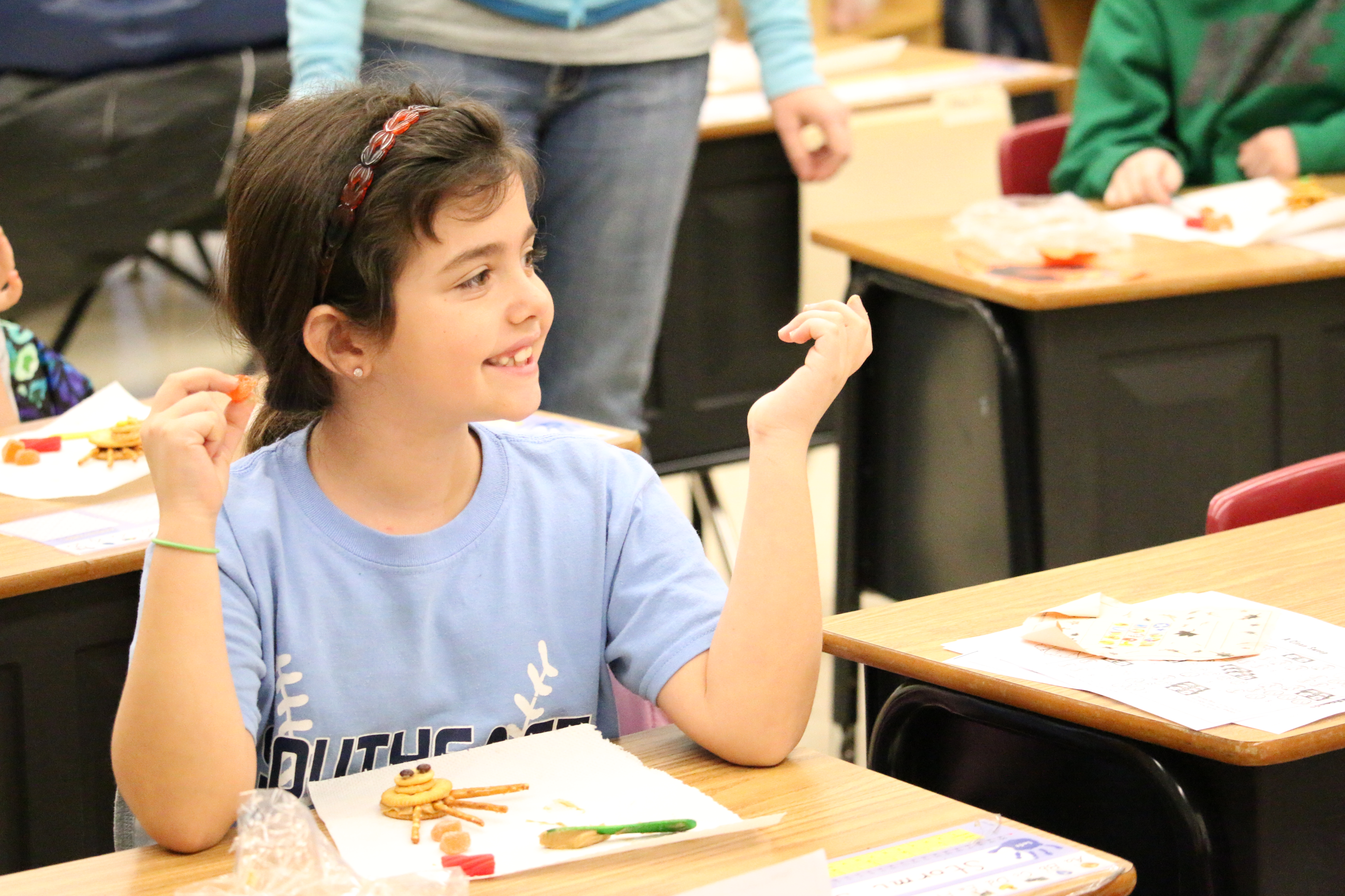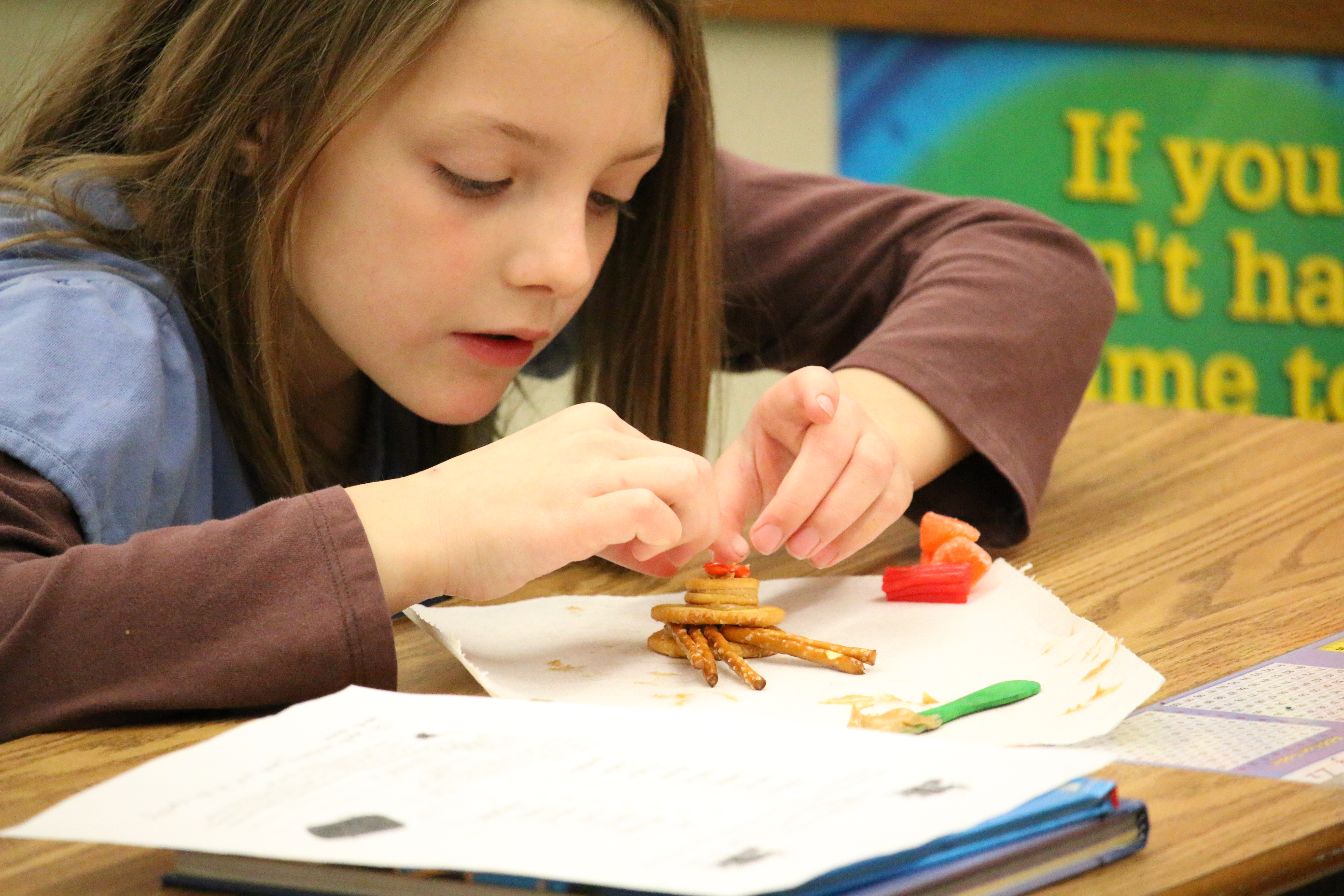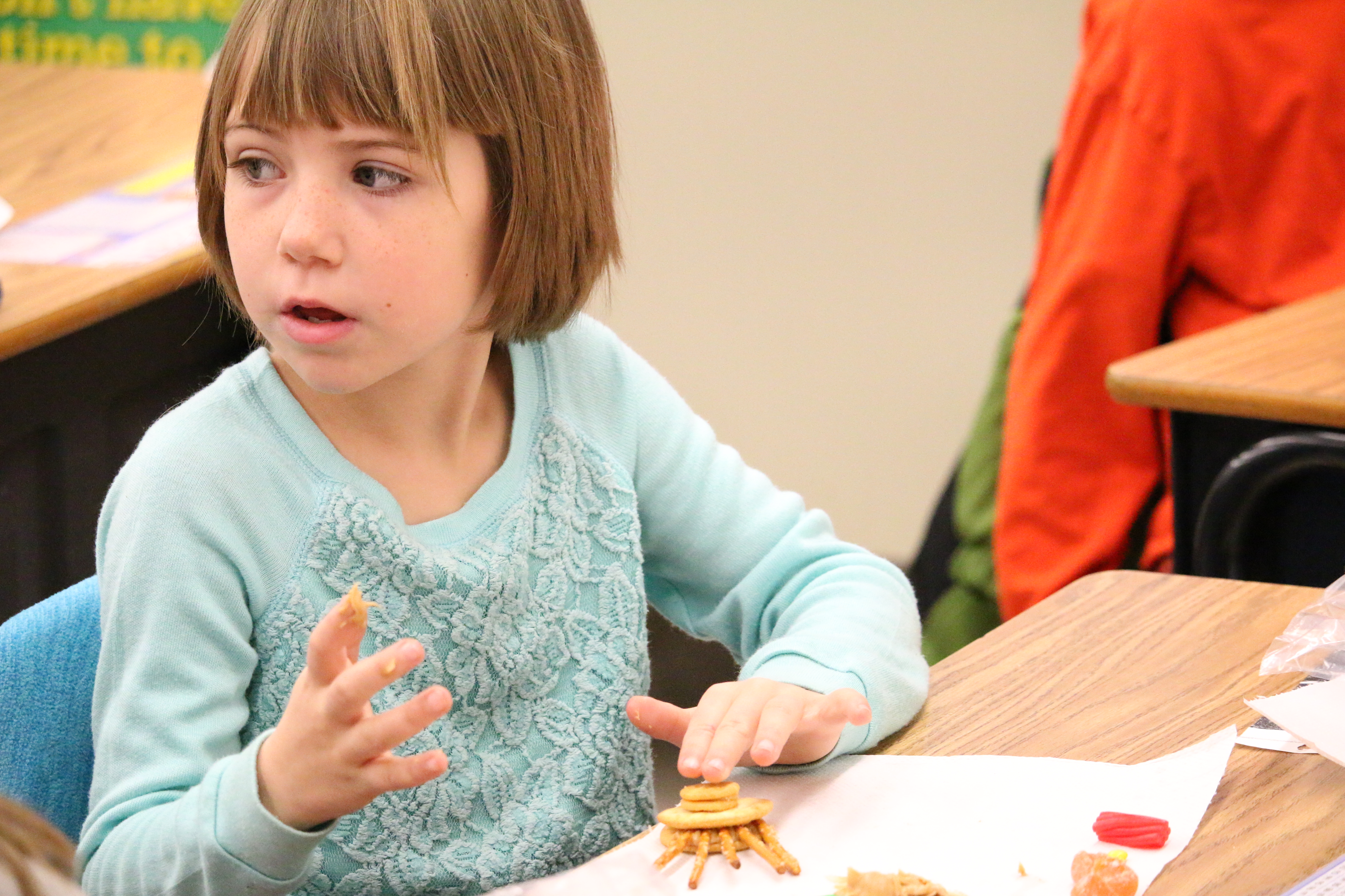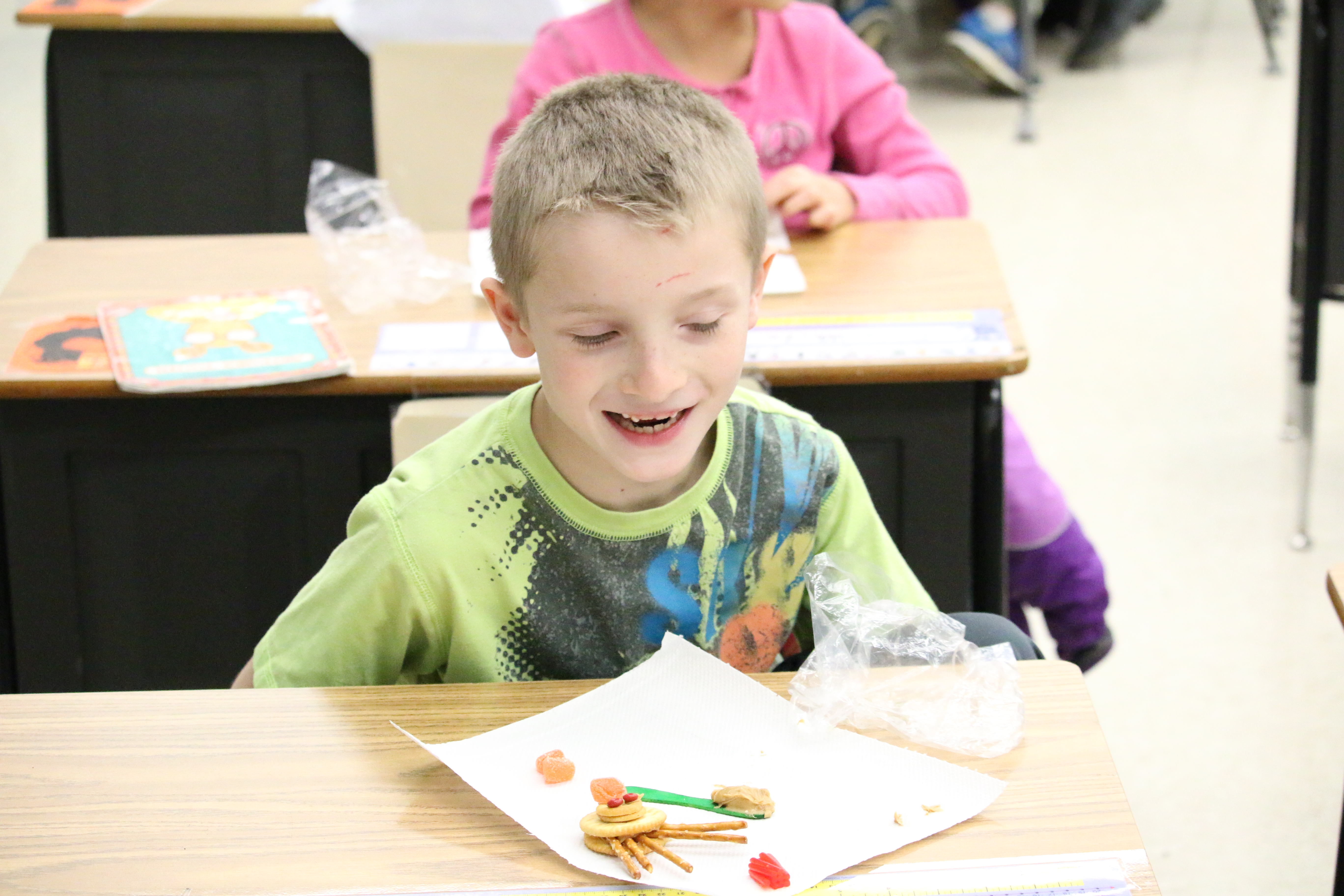 Mrs Winter’s 2nd grade creates edible turkey Posted on November 25, 2014 by Chris Wilson in Southeast Elementary School (SES) Peanut butter, crackers, pretzels, Twizzlers and orange slices tempted Mrs Winter’s 2nd grade class on Tuesday morning. She showed the students how to create a turkey using the tasty treats – with plans to let them eat the snack after lunch. Share this Click to print (Opens in new window) Print Click to email a link to a friend (Opens in new window) Email Click to share on Facebook (Opens in new window) Facebook Click to share on Pinterest (Opens in new window) Pinterest Click to share on X (Opens in new window) X Like Loading... Related