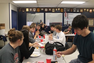 From Scott Sutton: The FFA Chapter Officers prepared a Thanksgiving meal for all FFA members on Tuesday. Chapter Officers include: Phillip Underwood, Jarod Watson, Laura Yancey, Jacob Zortz, Megan Gall and Melanie Hartman. Nearly 50 FFA members were served to a lunch that included: Turkey, Mashed Potatoes and Gravy, Stuffing, Green bean Casserole, rolls and homemade pie.