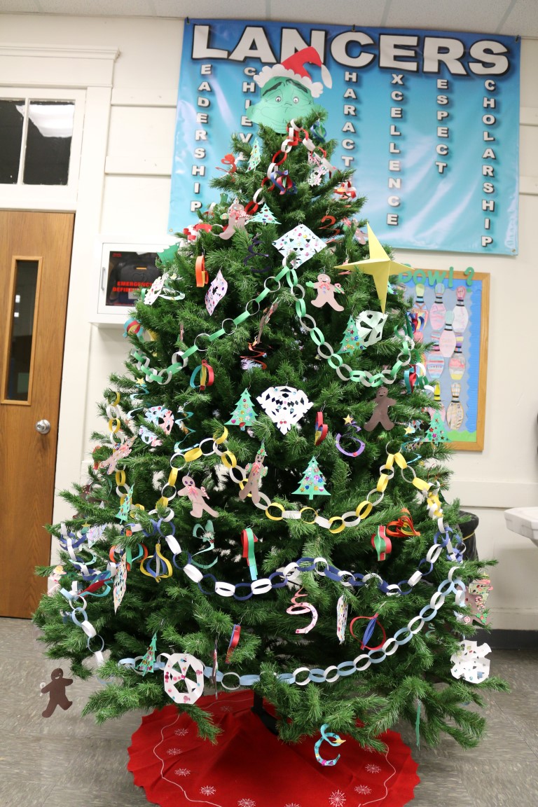 The Christmas Tree is up at Southeast Elementary School and is decorated by items created by the students at the school.