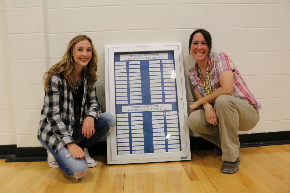 For 21 years Naomi (Goshert) Meinershagen held the Southeast High School school record for the Girls 3200 Meter. In 1995, as a sophomore, she ran a 13:25.4. Several Lancers had tried to break that record, including her younger sister Hannah. On May 3, 2016, Naomi’s record was broken by freshman Jessie Jenkins with a time of 13:20.50.
