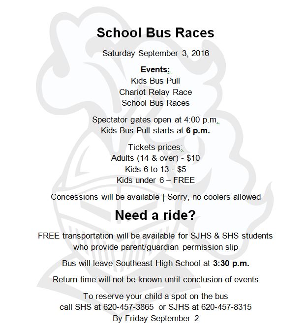 Free transportation for SJHS-SHS students to School Bus Races available