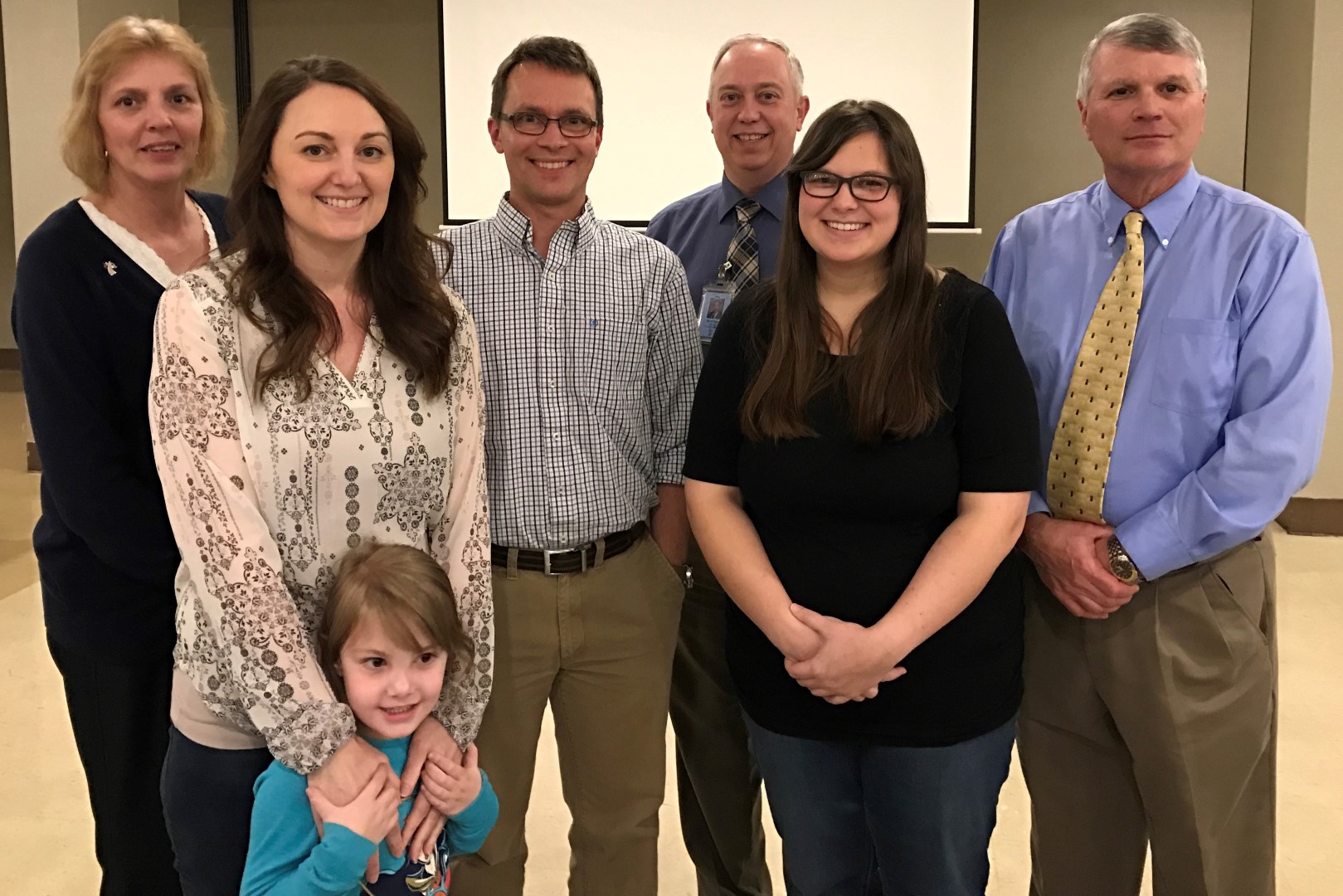 Pictured left to right are Principal Hall, Mrs. Gage and her daughter Brooke, Mr. Goode, Mr. Miner, Mrs. Withrow and Principal Martin. Photo provided by Jessica Crager.