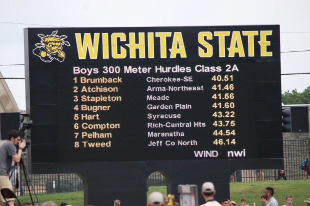 Jaret Brumback -110mh- fell over 7th Hurdle/ Ranked 1st in 2A all year. 4th fastest time in the all classes. 14.47