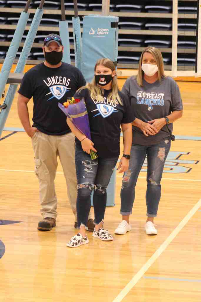 The evening of September 15 was volleyball senior night at Southeast High School. Seniors recognized were Mariah Brooks (Manager), Hannah McGowan (Manager), Shawnelle Smith, Mattie Haynes, and Railey Robertson (Captain).