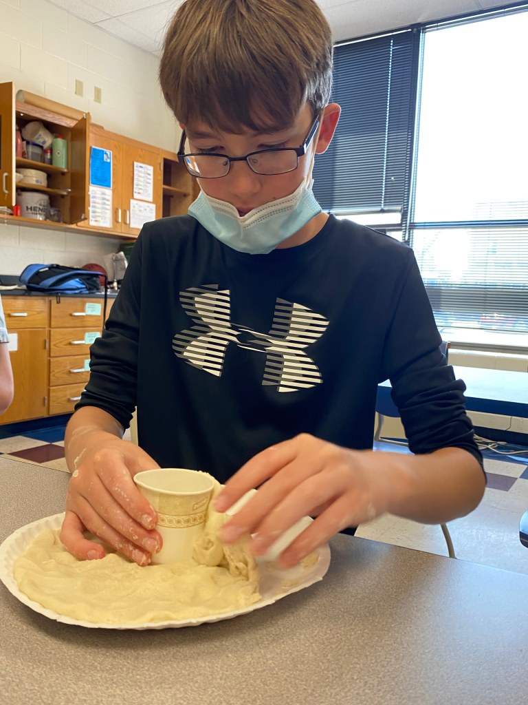 Mrs. Hobbs and Mrs. Collins’s 6th grade classes did a unit on volcanoes. Students learned the difference between three different types. They are shield volcano, stratovolcano, and cinder. Each student drew a popular volcano out of a hat. Once they were assigned their volcano, they had to do internet research and write a report about that volcano. After they presented their report, they made a model of their volcano out of salt dough, painted them, and watched them erupt.