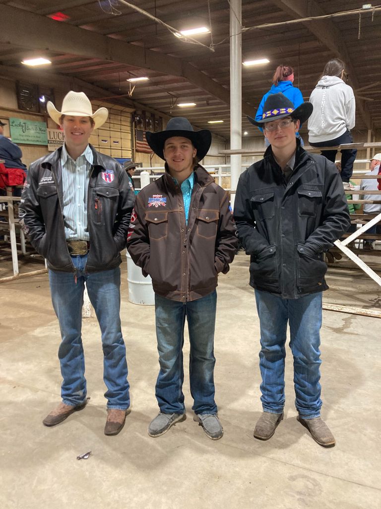 Quintonn Lunsford, Eli Pritchett, and Wyatt Scales are all members of the Missouri High School Rodeo Association. This past weekend they all competed in various events at the Lucky J Arena in Carthage, Missouri.