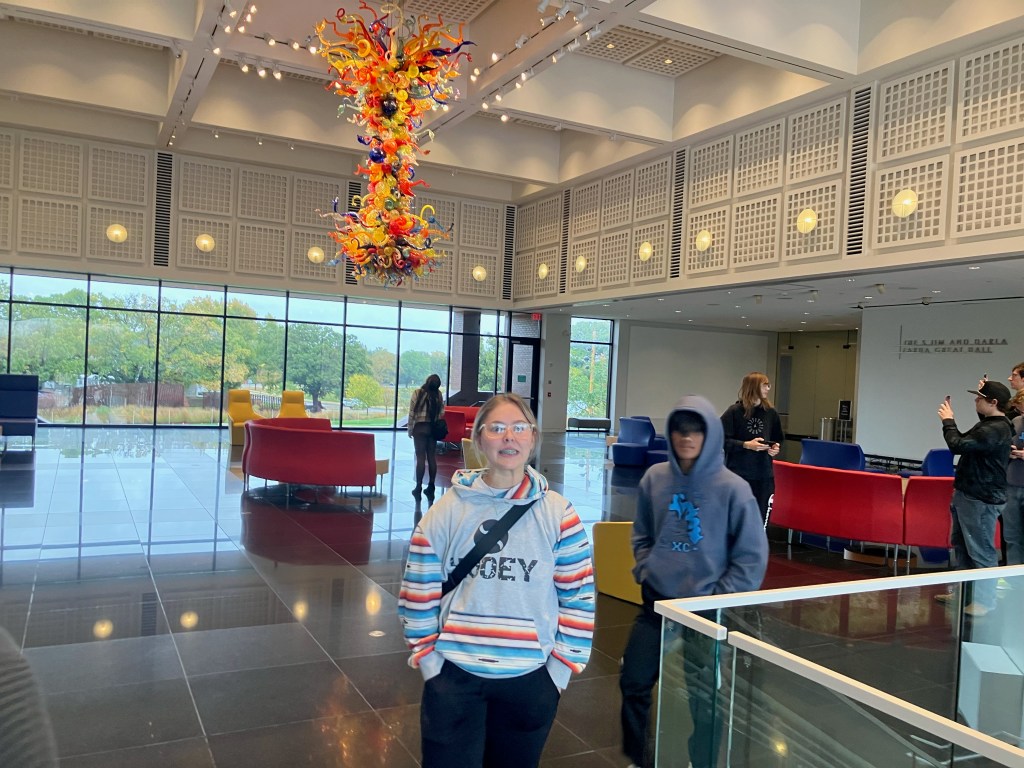 On Oct. 25th, Mrs. Evitts took a group of art students to the Wichita Art Museum. Meg Powers née Gall, 2015 SHS graduate, is currently the museum’s Development Associate and was one of the docents for the students’ museum tour. They were able to see a variety of American art works, including pieces by Dale Chihuly, Mary Cassatt, and Kehinde Wiley. The following students participated: Kalei Campbell, Kaycen Baylor, Kassidy Fox, Storm Miner, Daphne Tavernaro, Macy McReynolds, Teagan Warner, Kymbree Martin, Sooner Royer, Kilynn Banke, Macie Herron, Sandra Robinson, Ash Stark, Gabby Wright, Ethan Becker, Keaton Harrison, JM Fatalla, Hailey Kautz, Jackie Robinson, Kylei Sullivan, Callie Hudson, Melea Mitchell, Leah Reynolds, and AJ Gray. Mrs. Gibson and Mr. Butler also assisted with the tour and students. A wonderful time was had by all!