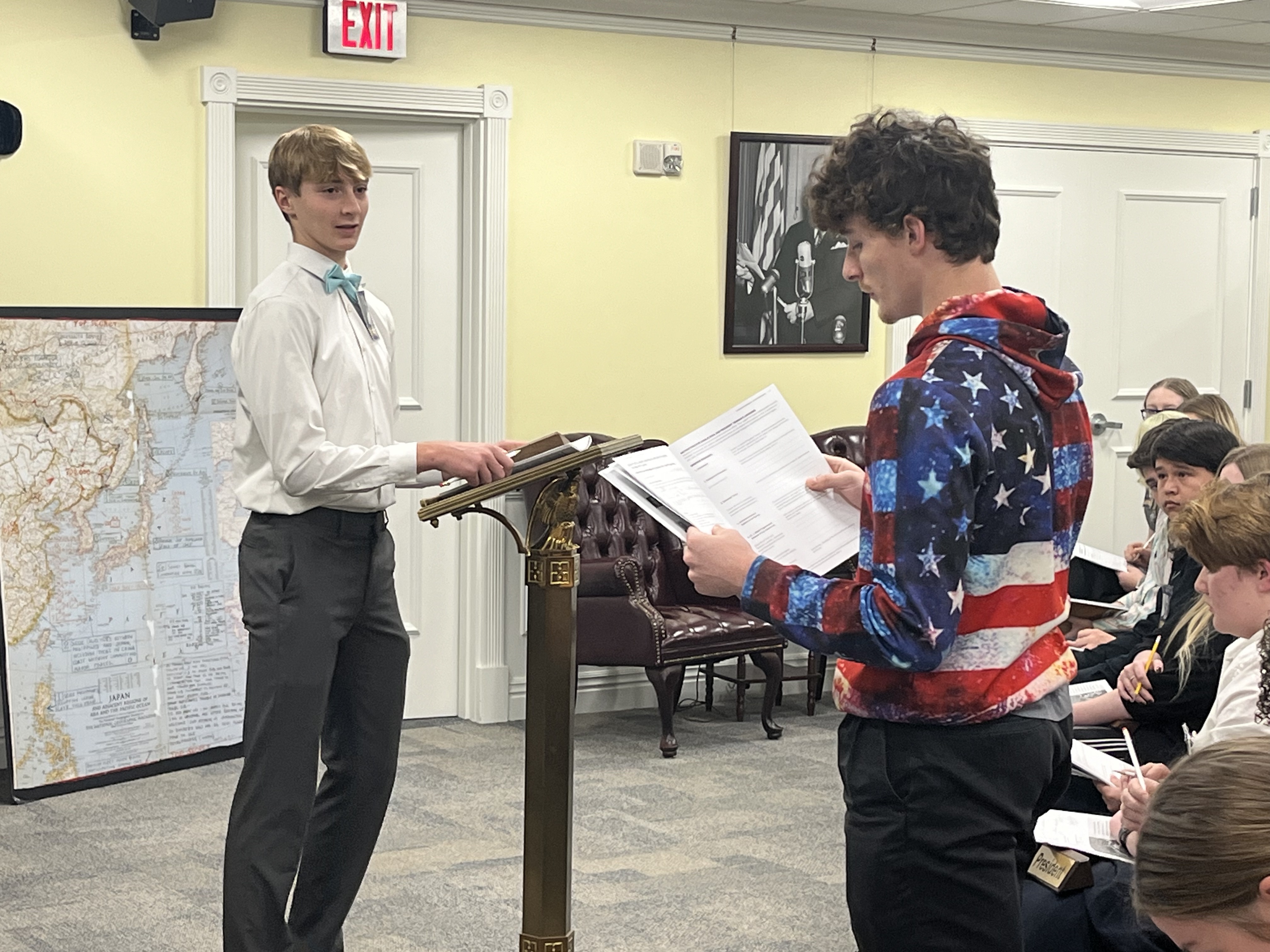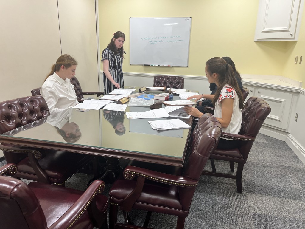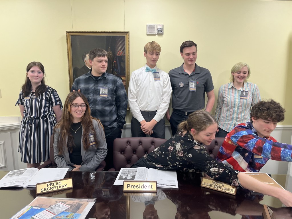 The White House Decision Center is a one-of-a-kind experience where students take on the role of President Truman or one of his advisors and deliberate over an actual situation Truman faced while being President. This year, students grappled with the best way to end the war against Japan in 1945. In their roles, students read through primary source documents, gathered information about the war and then formulated a plan for ending it. The experience culminated with a Senate briefing where President Truman announced his plan for ending the war and fielded questions from senators.