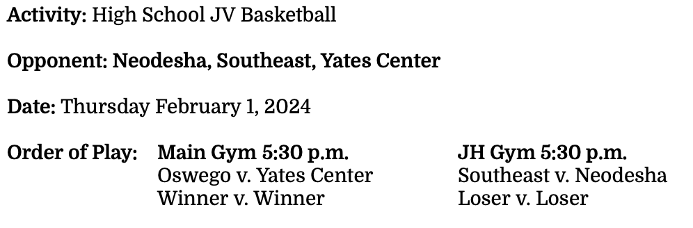 SHS JV/C Basketball @ Oswego – February 1