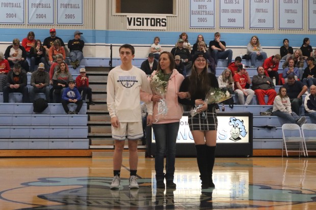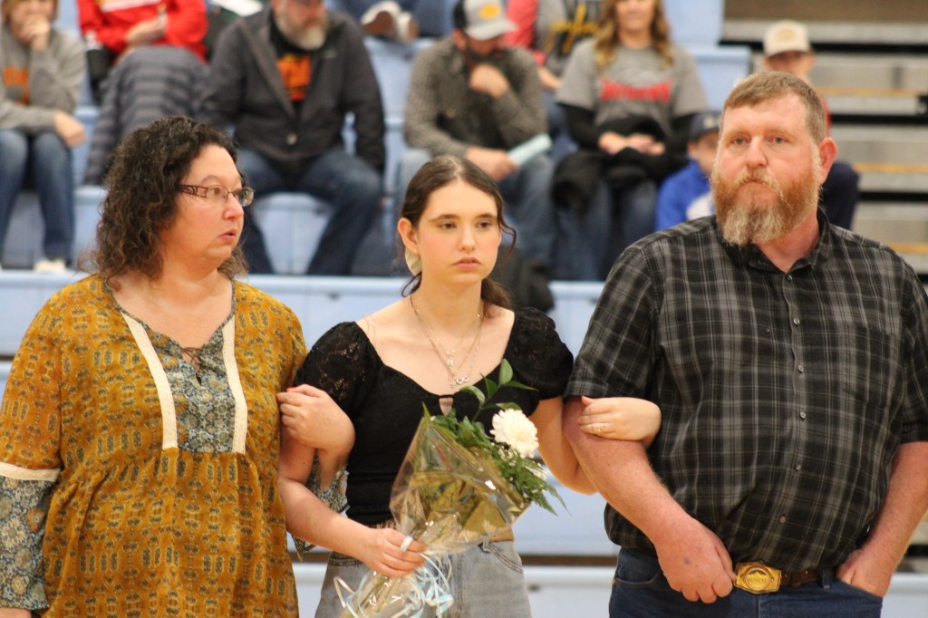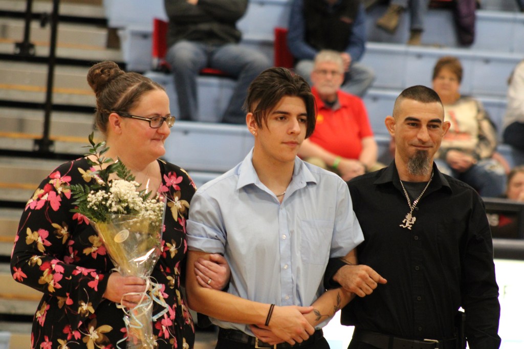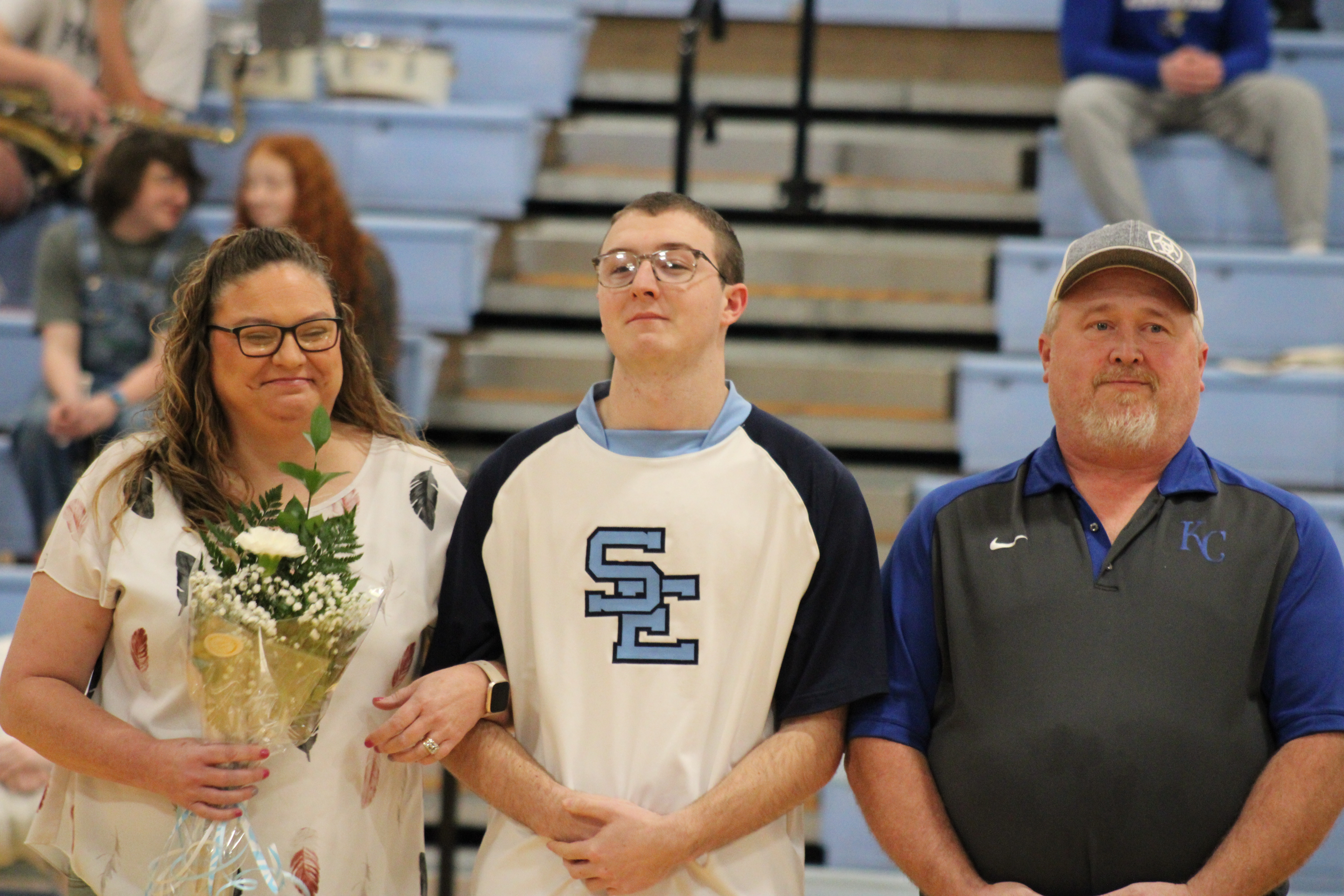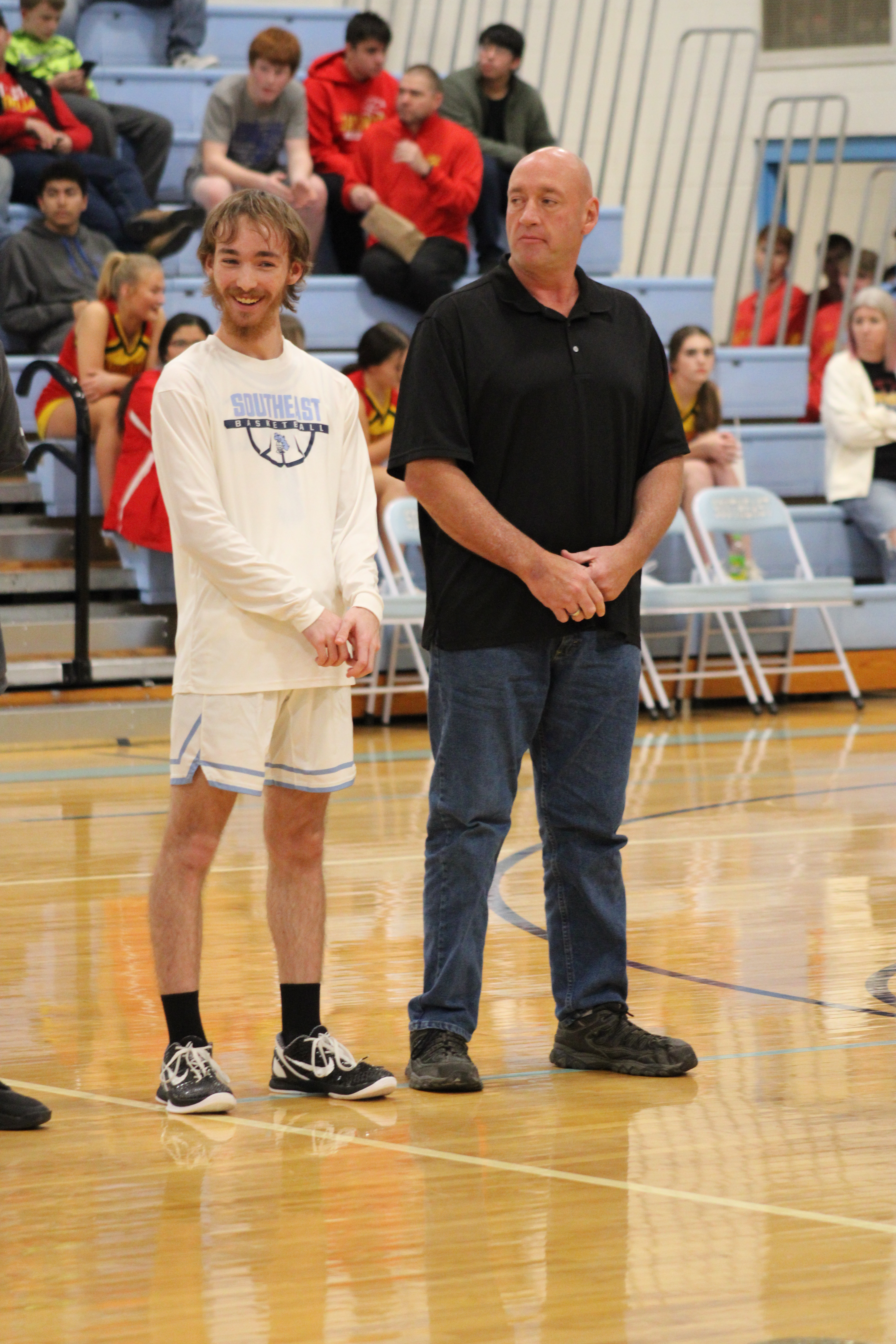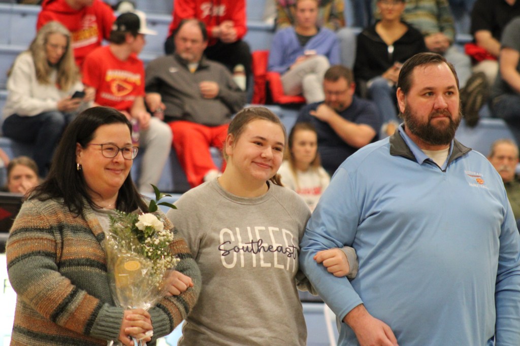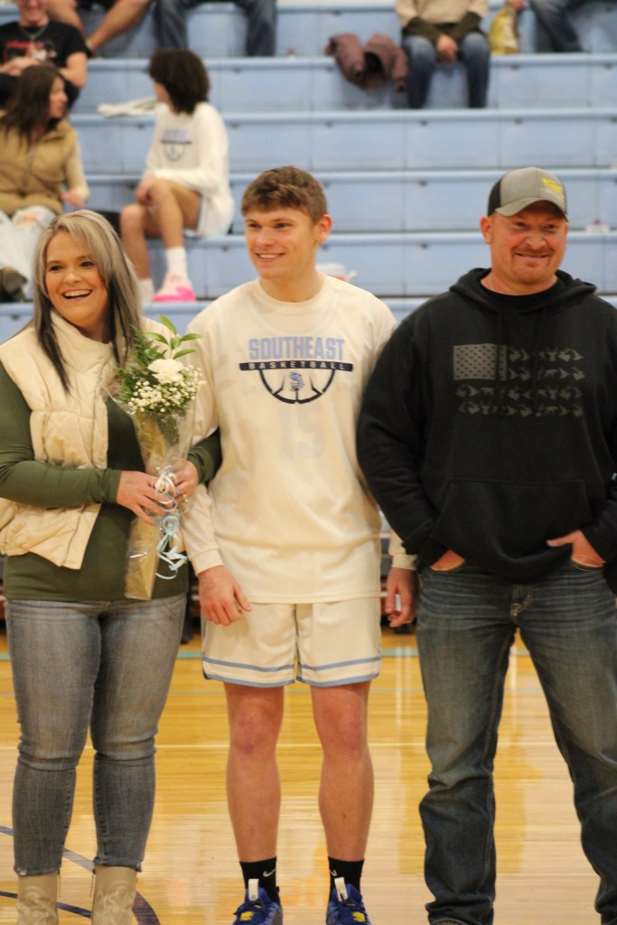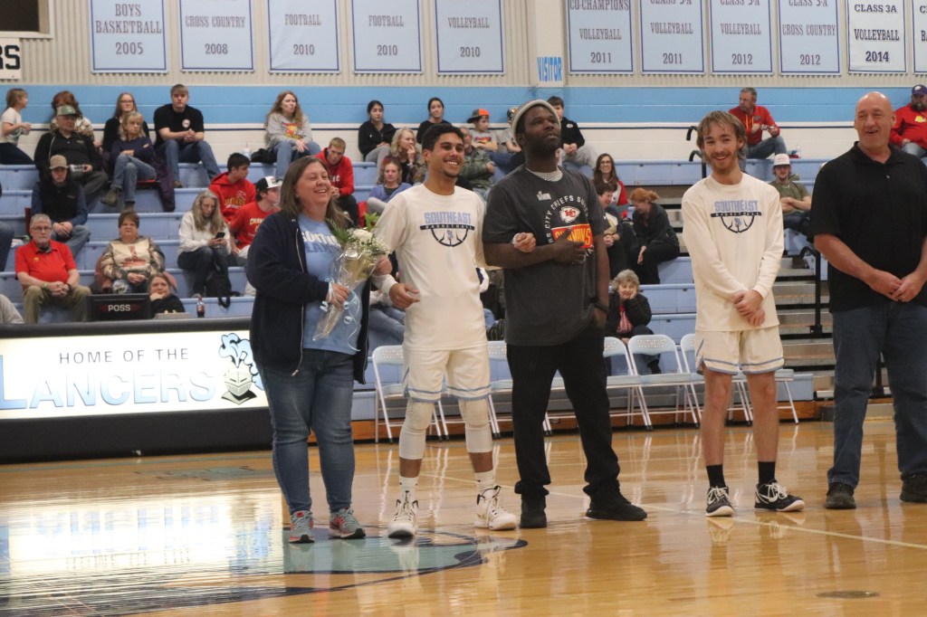 On Friday, January 26th, Southeast High School recognized Senior winter sports athletes and Senior band members. Seniors include: Kinzey Cassidy and Storm Miner (Girls Basketball), Travis Hallam Jr., Hayden Galindo, Deric Mitchell, Dalton Davis, Chase Windsor (Boys Basketball), SaydeAna Renn and Tanner Wiles (Cheer), Layton Reynolds and Danielle Smith (Band).