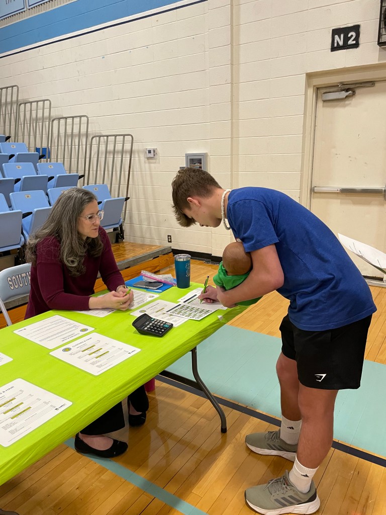 Each scenario includes the student’s monthly income, credit card debt, student loan information, as well as marital and family status. Students are given a checkbook register to track their monthly purchases from the 12 booths representing services and/or products that adults typically must purchase or consider each month. Sometimes they must return a “purchase” and make a different decision. The checkbook register can’t fall below zero!