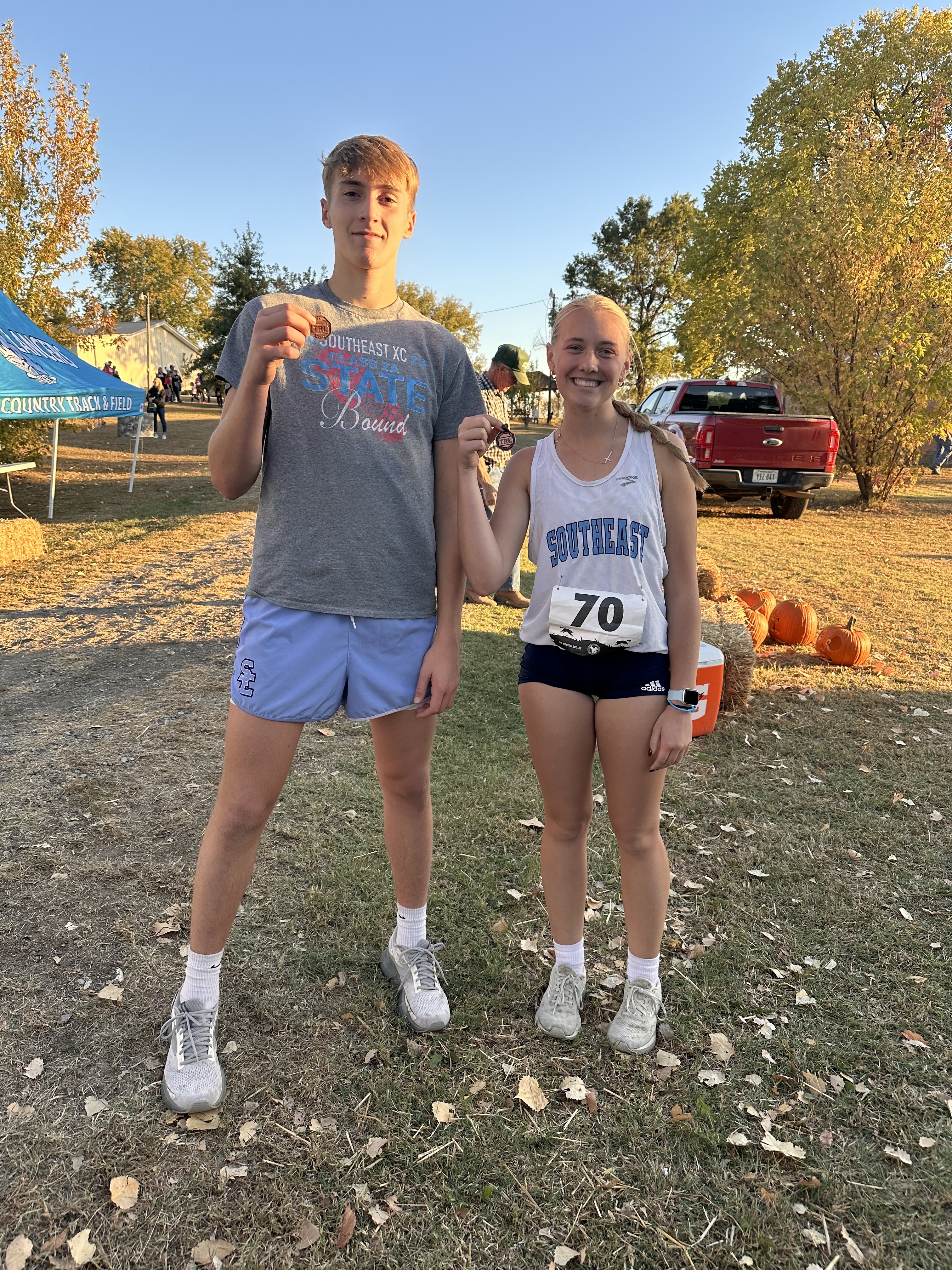 Kendyl Renn and Zayne Gabern are All-League medalists; Jackie and Sandra Robinson both ran season bests and looked strong doing it; Henry Burns continues to get better each race, as he ran his fourth season best; Kayden Utley finished his first 5K ever; AJ Gray started in on the season a month ago and ran a career best by over a minute; and the boys team finished third behind pack-running Jayhawk Linn by only 4 points (Central 10, Jayhawk Linn 43, Southeast 47).