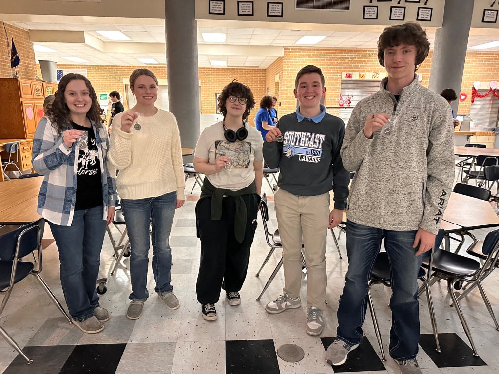 Pictured (L to R): Senior Jade Peak, Senior Addison Hildebrandt, Sophomore Emma Call, Sophomore Hudson Locke, and Junior Michael Smith