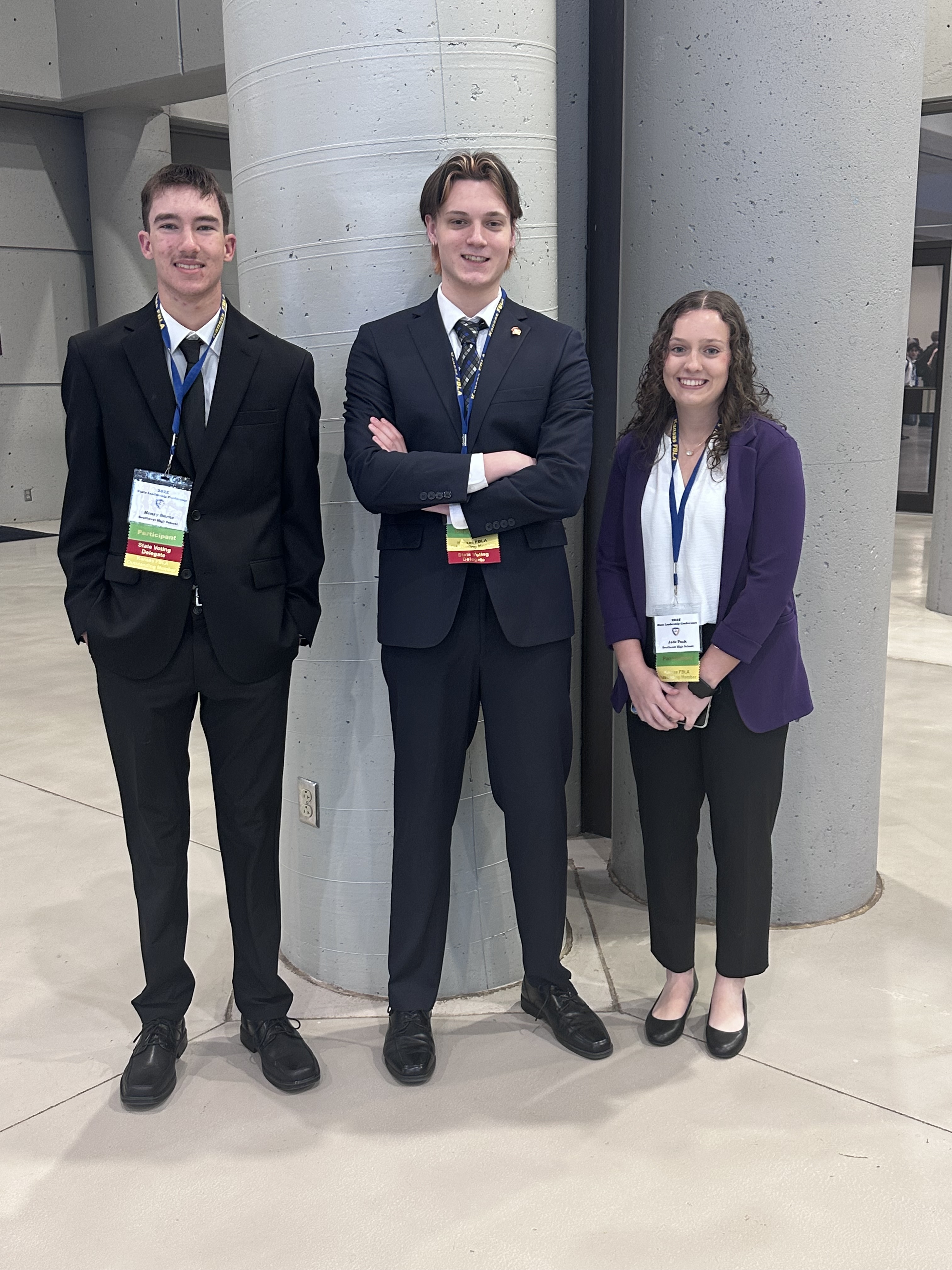 Henry Burns, So. Rowdy Robertson, Sr., and Jade Peak, Sr., qualified to represent Southeast High School at the 2025 FBLA State Competition in Topeka, KS, on March 31st & April 1st. Over 1700 members and advisers attended the state conference over 2 days.