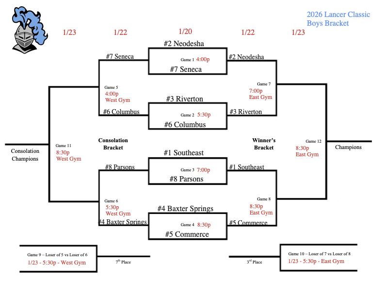 Due to the strong possibility of inclement weather, the Lancer Classic brackets have been revised. The second round of both boys and girls competition will now be played on Thursday, January 22, with the final round scheduled for Friday, January 23.