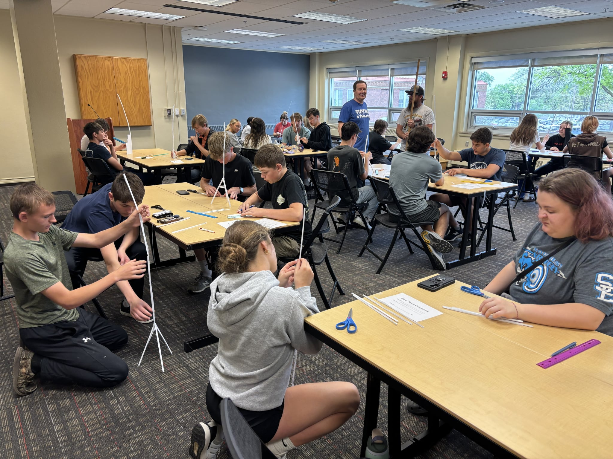 Physics events featured a wide range of challenges, including mousetrap cars, paper tower construction, Mars colony design, astronomy, and geology. Students also completed a rigorous overall physics test consisting of 180 questions in just 40 minutes.