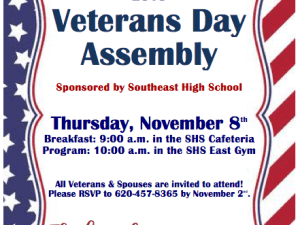 Southeast High School will host their annual Veterans Day Assembly on Thursday, November 8th. Veterans and their spouses are invited to a breakfast at 9:00 a.m. in the ... [Read More]